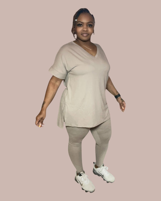 COMFY BRUNCH V-NECK SET(ASH MOCHA)