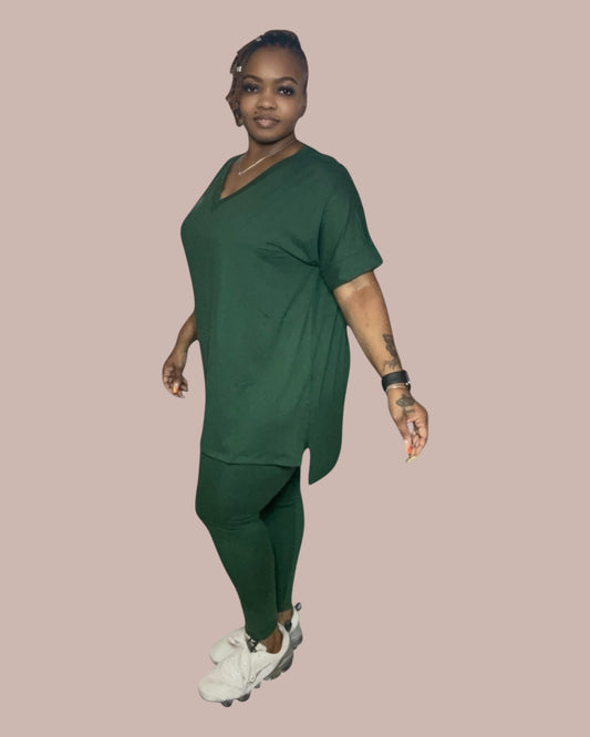 COMFY BRUNCH V-NECK SET(DK GREEN)