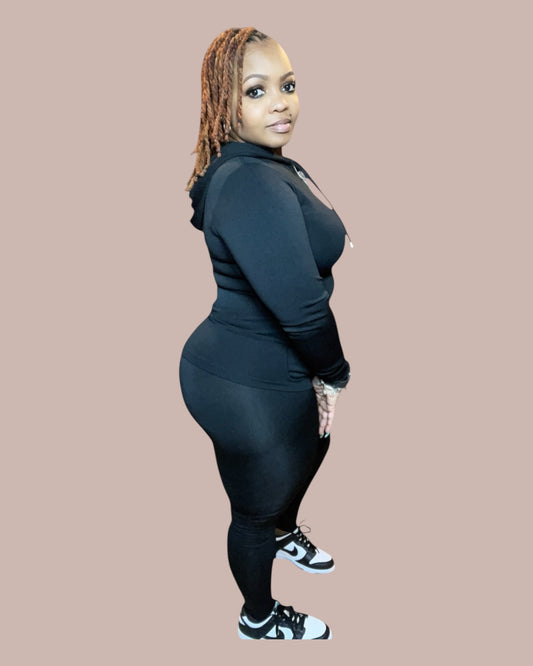 Sold outZIPPED CROP HOODIE SET (CHARCOAL)