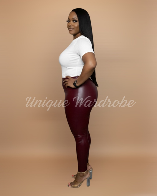 FAUX LEATHER LEGGINGS (BURGUNDY)