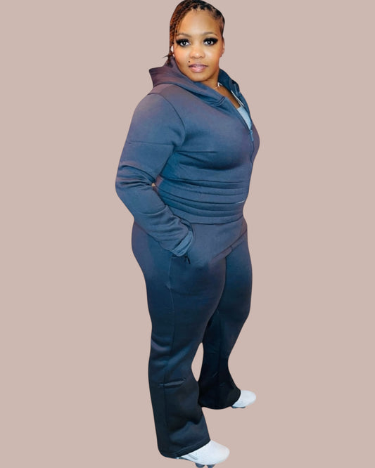 Sold outZIPPED CROP HOODIE SET (CHARCOAL)