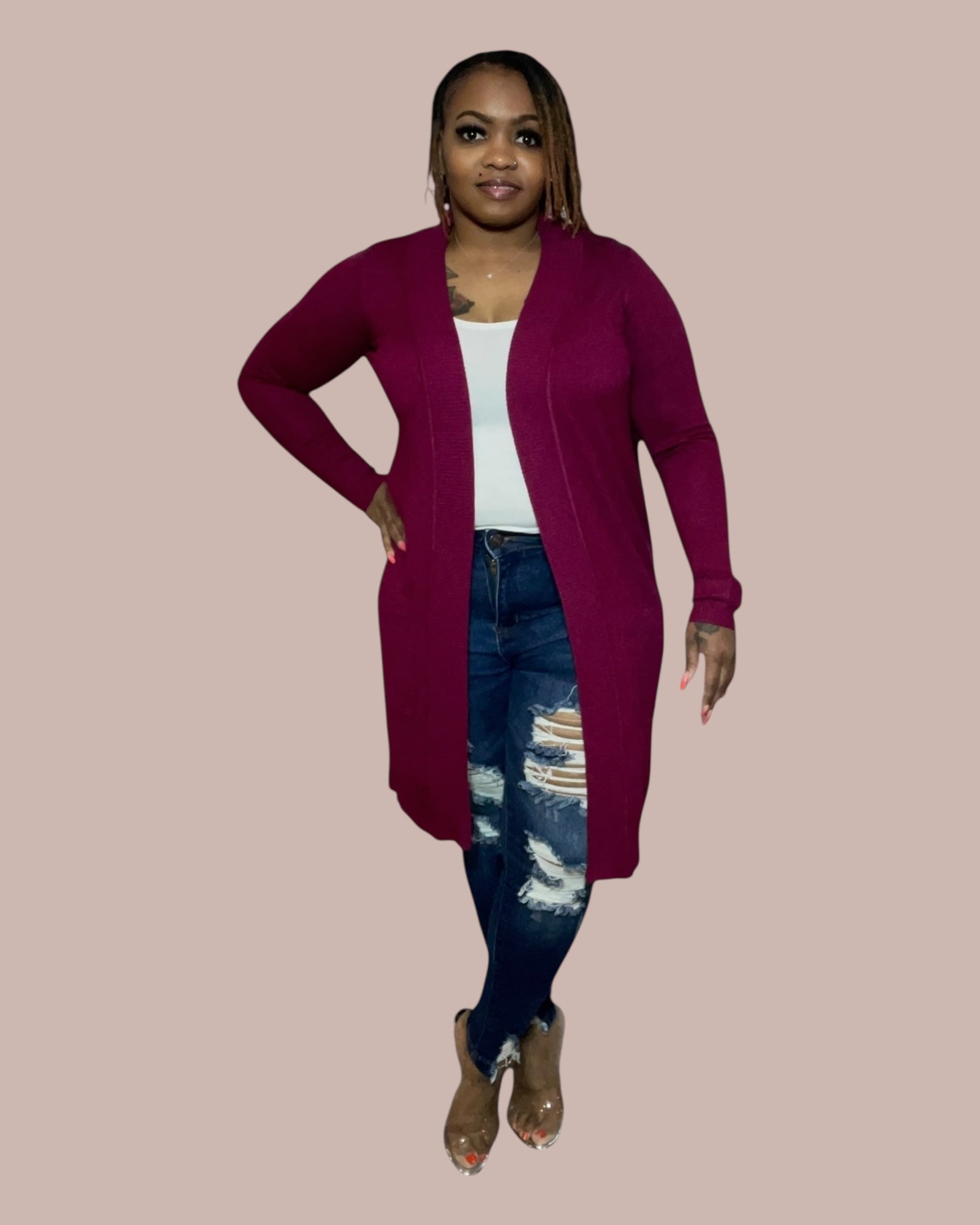 OPEN FRONT CARDIGAN (MAGENTA)
