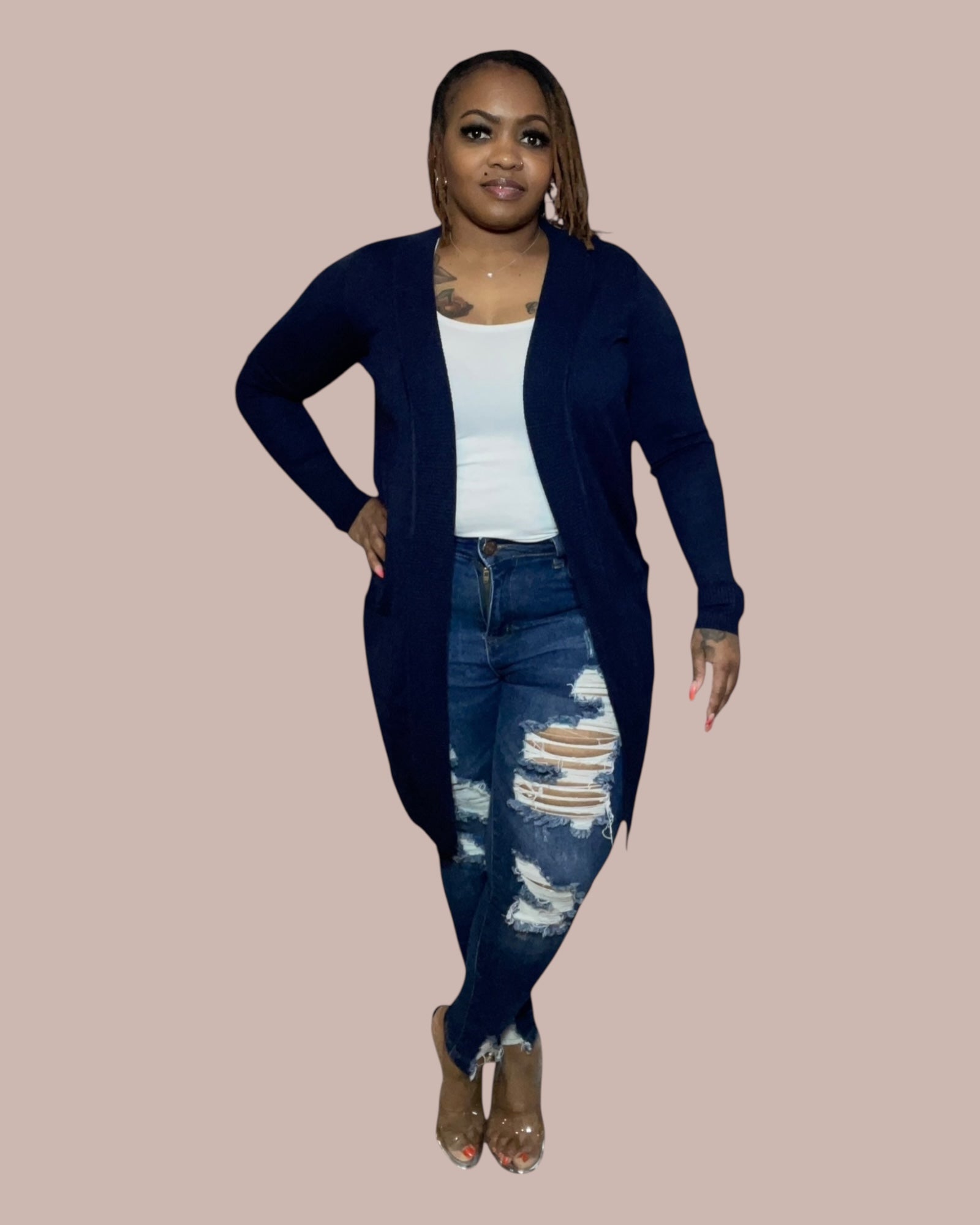 Stay cozy and stylish with our Open Front Cardigan in Navy. Made from a breathable and stretchy material, this cardigan offers all-day comfort while keeping you fashion-forward. Perfect for any occasion, this cardigan is a versatile addition to your wardrobe.