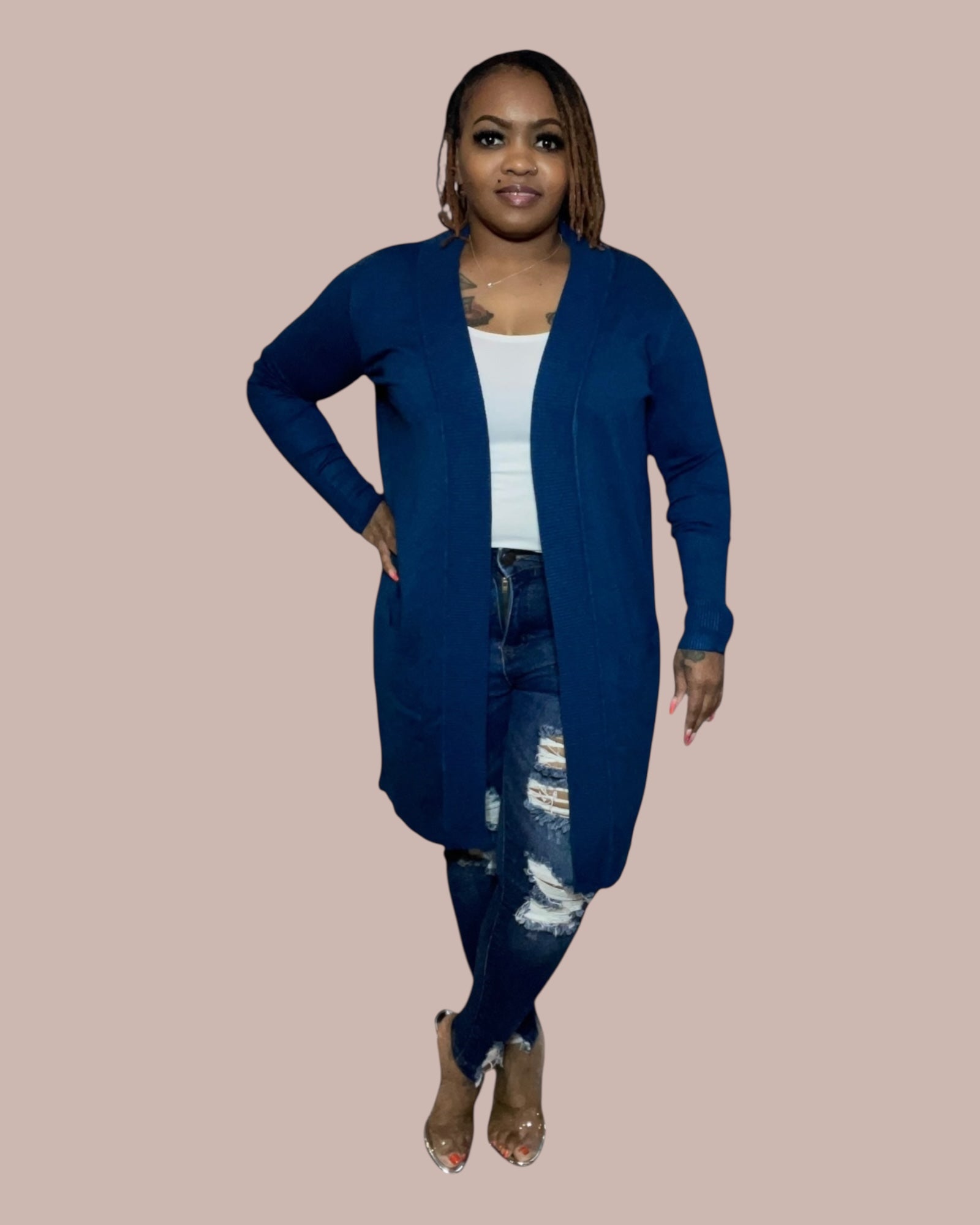 This teal "Open Front Cardigan" is the perfect addition to your wardrobe. Its stretchy, breathable fabric ensures a comfortable fit and its versatility makes it ideal for all dress codes. Enjoy the comfort and style of this cardigan.