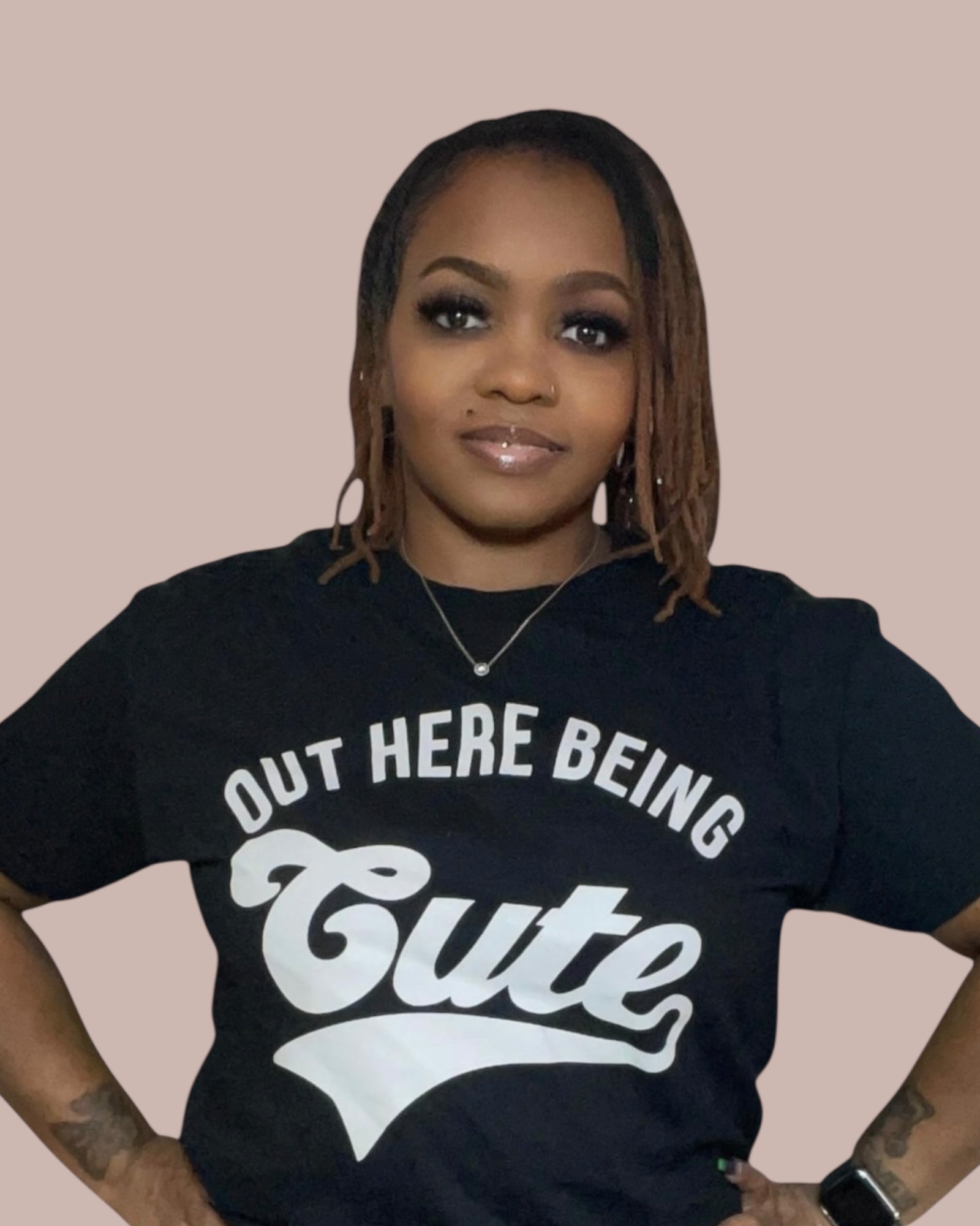 Stay stylish and cute with our OUT HERE BEING CUTE (BLACK/WHITE) graphic tee. Made with a soft and comfortable material, this tee is perfect for any casual occasion. Stay on-trend and confident with this stylish addition to your wardrobe.